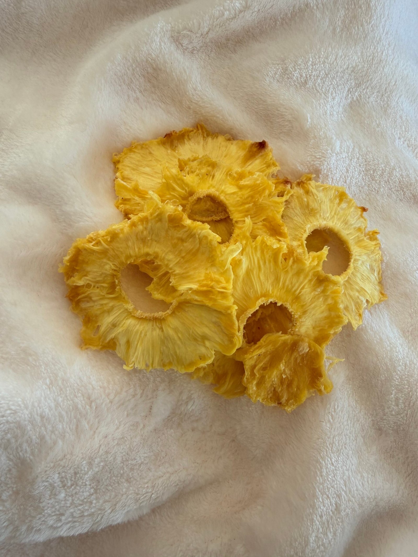 L’ananas séché est une friandise naturelle, sucrée et parfumée, riche en vitamines et enzymes qui favorisent une bonne digestion. Sa texture tendre et savoureuse séduit les lapins et cochons d’Inde.
