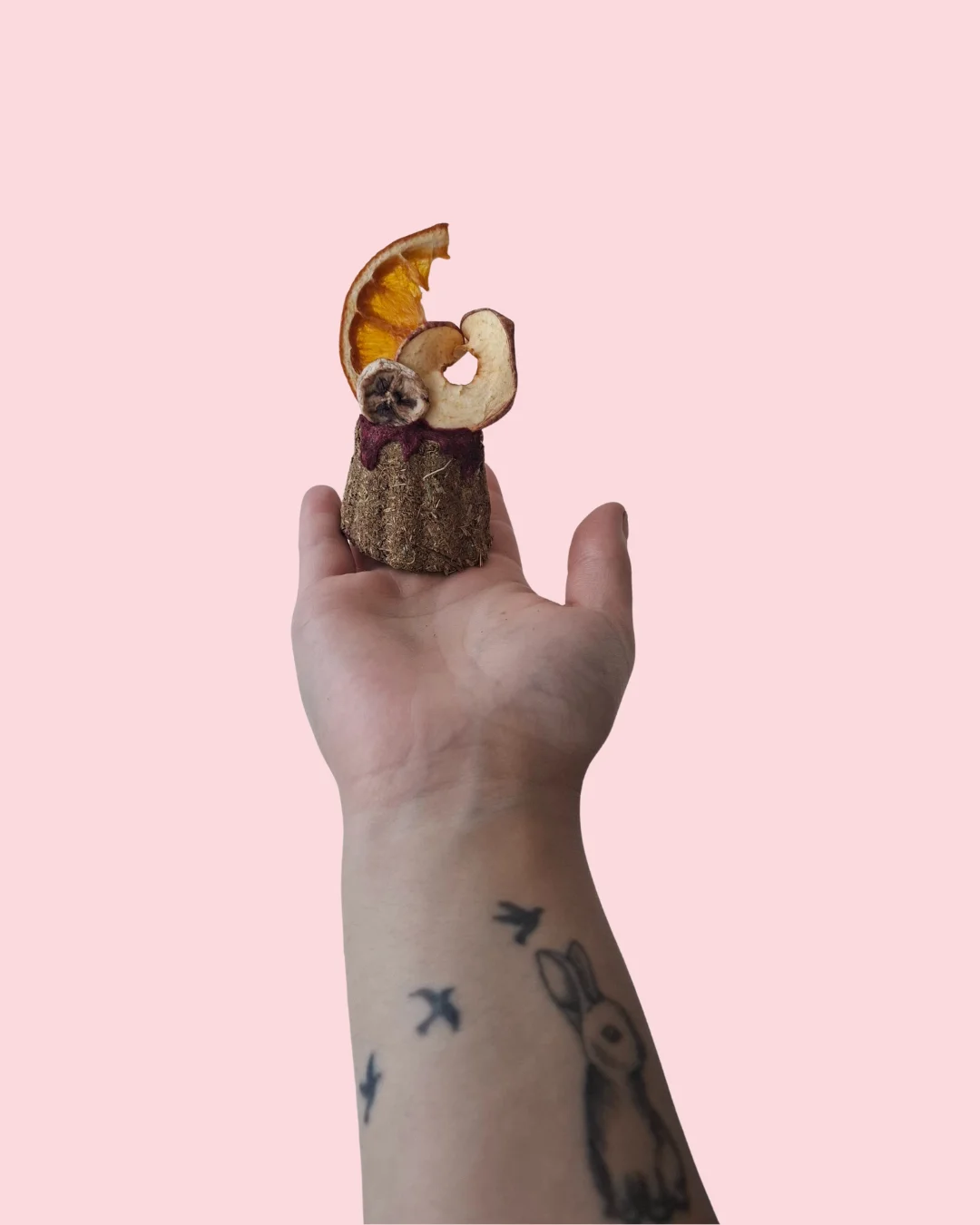 Ingrédients: Foin, banane, feuille de noisetier, betterave, orange et pomme.